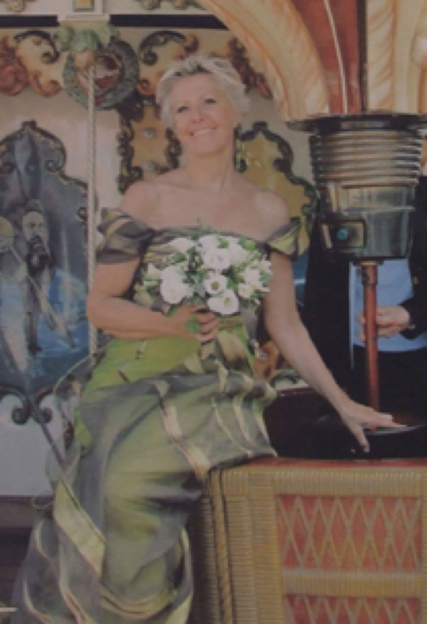 Avec une de ses création, Muzzy présente au « bal de la rose » 2019 à Monaco en hommage à Karl Lagerfeld et à la Princesse Grâce.